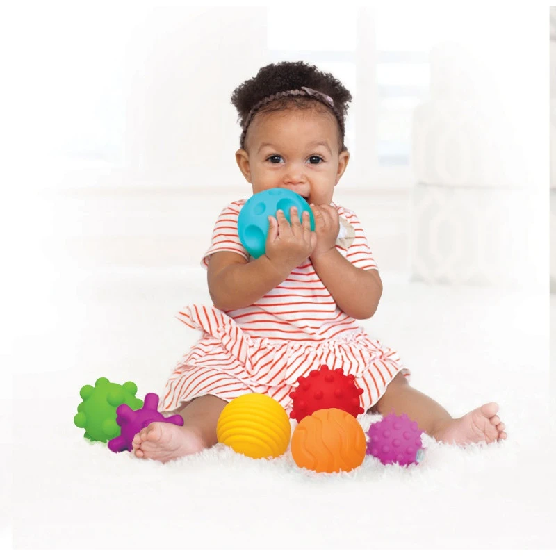 Ces petites balles sensorielles sont parfaites pour l’exploration sensorielle et le développement tactile de l’enfant qui s’amusera à les manipuler! Conçues en plastique souple, ces balles sont très douces et agréables à manier.