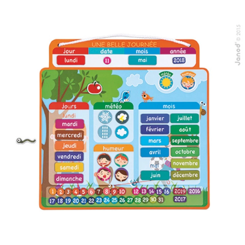 L’agenda magnétique « Une belle journée » de Janod est idéal pour apprendre à votre enfant à maîtriser le temps ! Utilisable dès les 3ans de l’enfant, il est composé d’un tableau à suspendre et de 67 magnets qui vous permettent de noter la date avec le jour de la semaine, son numéro, le mois et l’année mais aussi la météo et l’humeur du moment, et ce chaque jour tout au long de l’année ! Ce joli calendrier magnétique aidera votre tout petit à acquérir la notion du temps !