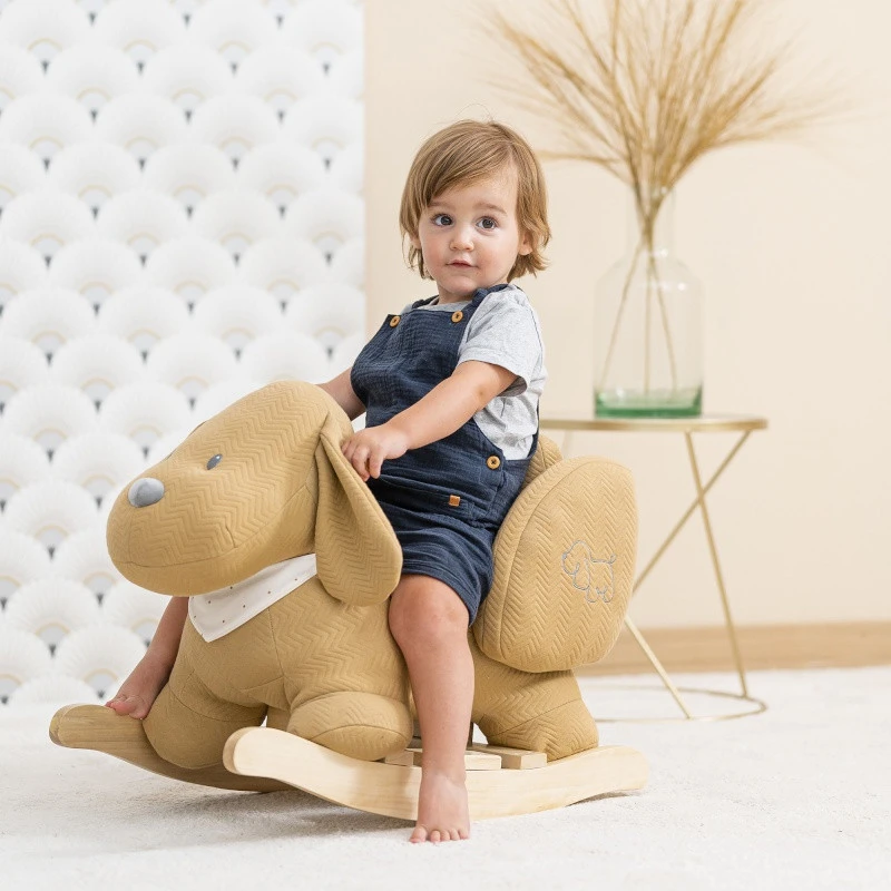 Vous cherchez une idée cadeau originale pour une naissance ou un premier anniversaire ? Vous allez craquer pour cet adorable chien à bascule appartenant à la collection Charlie de Nattou. Il propose aux enfants, âgés de 10 mois et plus, de découvrir une nouvelle sensation amusante : se balancer d’avant en arrière, avec l’aide d’un adulte au début, seuls ensuite dès que leur équilibre et leur tonicité musculaire le leur permettent.