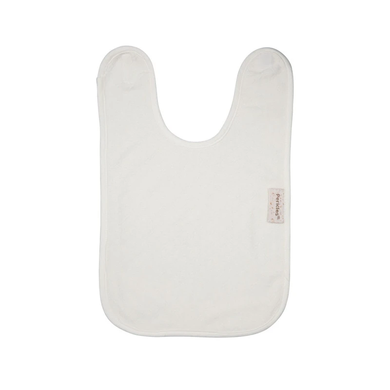 Le bavoir à velcro Large Coffee Périclès est réalisé dans un très beau tissu uni blanc à bouclettes, majoritairement composé de bambou doux et absorbant.
