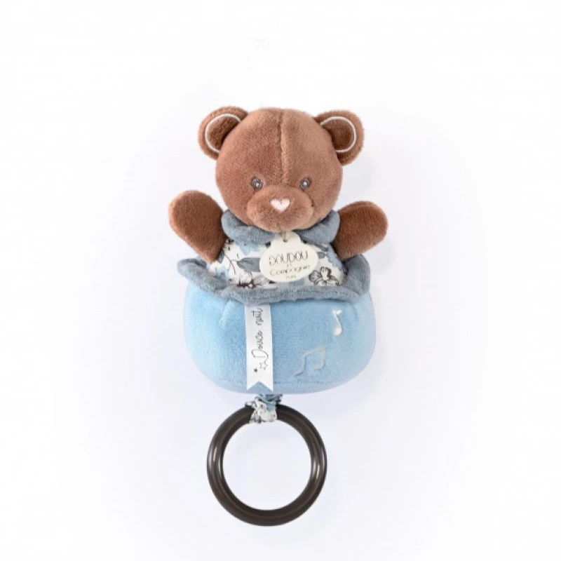 Cet ours Boh’aime de Doudou et Compagnie cache également dans son corps une boîte à musique qui enchantera votre bébé. Il suffit de tirer sur la poignée pour faire entendre les douces notes de la berceuse qui saura apaiser votre petit et l’aider à trouver le sommeil.
