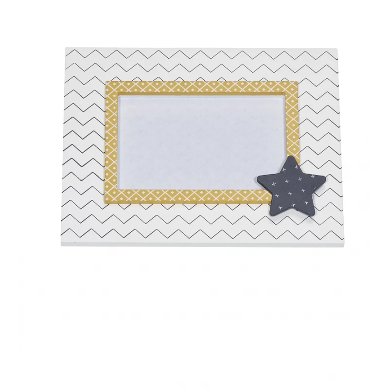 Ce beau cadre photo assorti à la collection Hello de la marque Sauthon vous permettra de conserver la photo de souvenirs agréables, de bébé ou de la famille. Dans les tons de bleu marine, blanc et jaune avec de jolis motifs chevron et une belle étoile marine, il complète à merveille la décoration de la chambre de votre bébé.