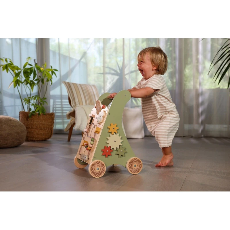 - Chariot d’éveil et de marche fabriqué en bois FSC.