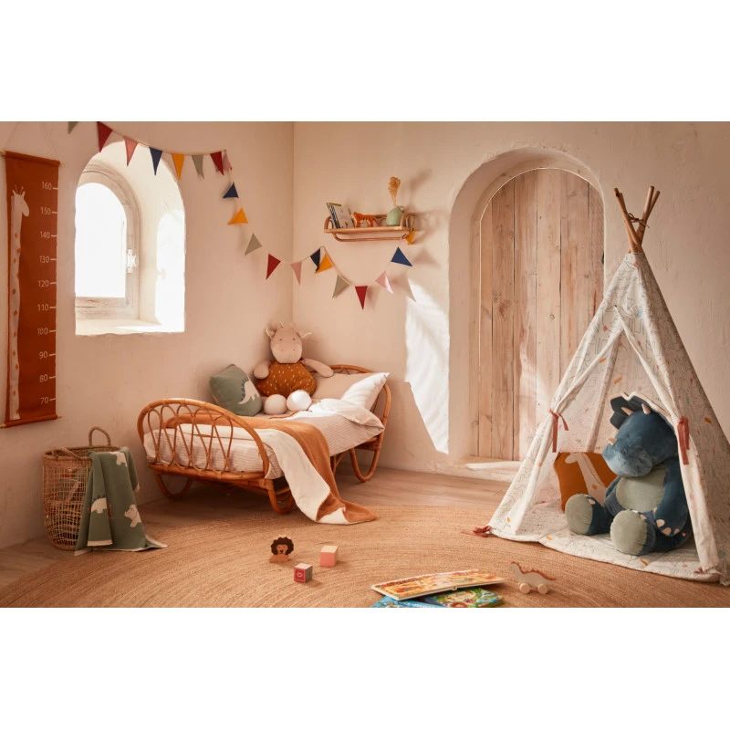 Cette couverture 75 x 100 de Noukies complète parfaitement les autres composants de la collection Tiga, Stegi & Ops qui compte du linge de lit et de toilette, des objets de décoration, des jouets d’éveil et peluches de toutes tailles. Vous trouverez également dans la gamme Mix & Match de Noukies de jolis éléments dans les mêmes teintes, à associer au gré de vos envies. Laissez-vous inspirer…