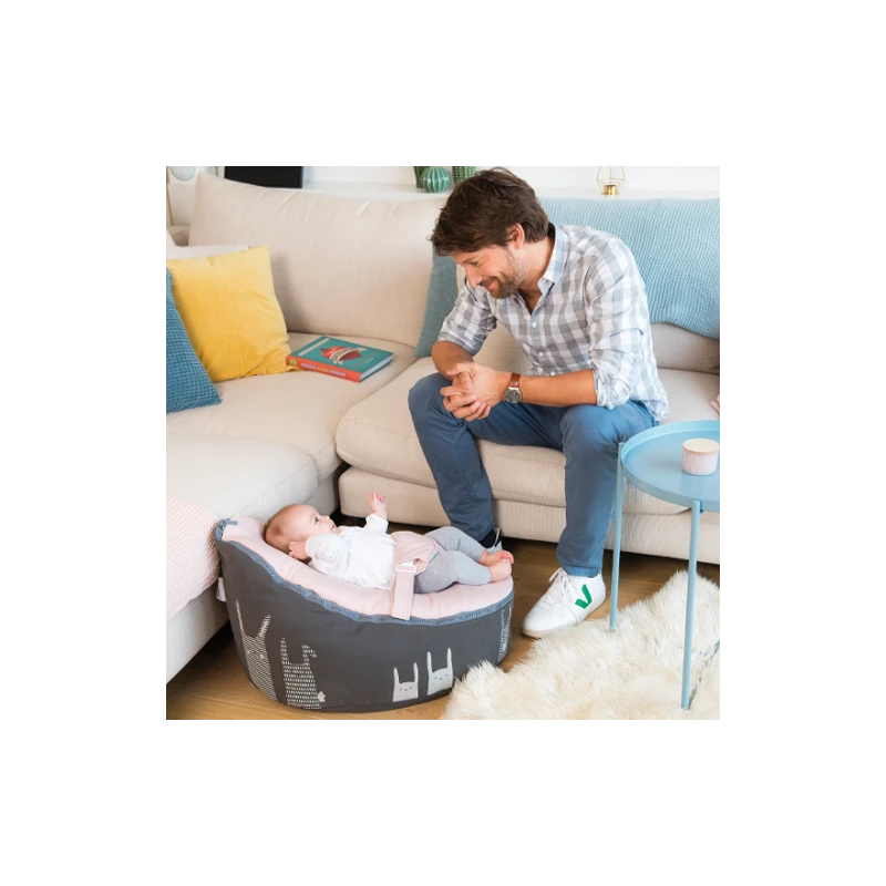 La nouvelle génération du Doomoo Nid est est plus confortable grâce à son contour douillet et son remplissage en microbilles. Sa nouvelle base rigide offre une meilleure stabilité, vous pourrez ainsi utiliser le Doomoo Nid Babymoov comme transat jusqu’à 6 mois, puis comme pouf jusqu’à 30 kg.