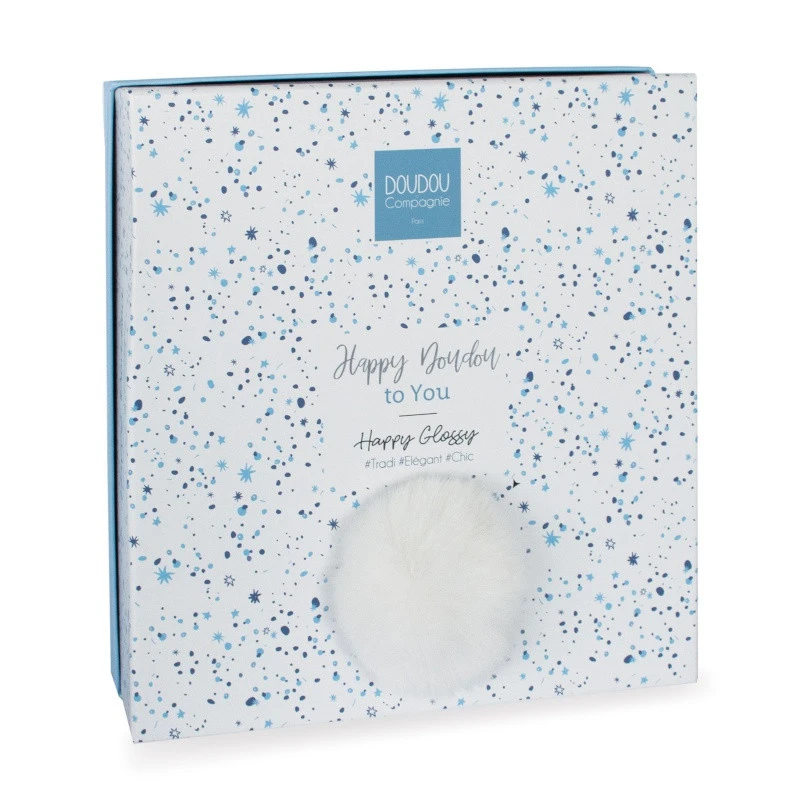 Dans la famille « Happy Doudou to You » de Doudou & Compagnie, voici le doudou-lapin carré Happy Glossy. Avec sa forme toute plate, ses longues oreilles et ses bras fins, il est très facile à saisir par une petite main. Avec sa juxtaposition de matière, peluche douce d’un côté, lange pailleté de l’autre, il se fera immédiatement adopter par votre bébé, qui y trouvera le compagnon idéal de jeux comme de câlins. Avec ses tendres touches bleutées et ses multiples rubans parsemés, il saura séduire autant les grands que les petits.