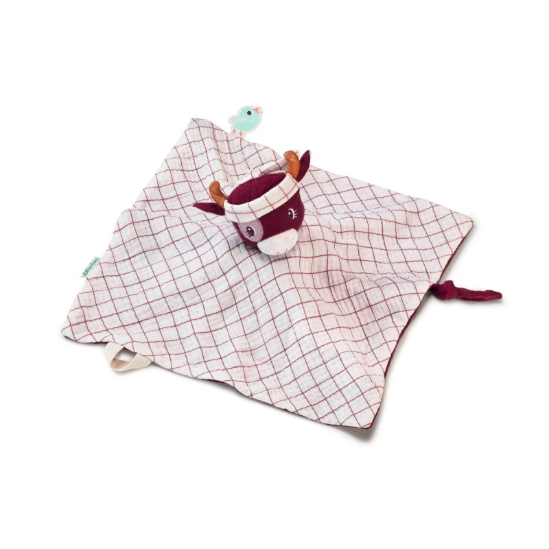 La marque belge Lilliputiens crée depuis plus de 25 ans des personnages irrésistibles et attachants, qui ravissent le cœur des enfants comme des adultes. Parmi eux, voici Rosalie, la vachette rebelle tellement mignonne avec sa tunique à carreaux et son bandana sur la tête, représentée sur ce tendre doudou qui rassure et réconforte bébé.