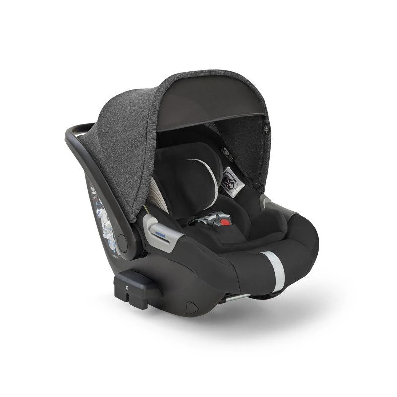 La particularité du siège-auto i-Size Darwin Recline : il est inclinable, aussi bien en promenade sur le châssis de la poussette Electa qu’en voiture. Bébé peut alors circuler dans une position quasi-allongée, avec les jambes placées dans l’alignement de son dos. Il est confortablement maintenu par le coussin réducteur respirant les premiers mois, et il est attaché par le harnais à 3 points, dont la hauteur se règle en même temps que le cale-tête.