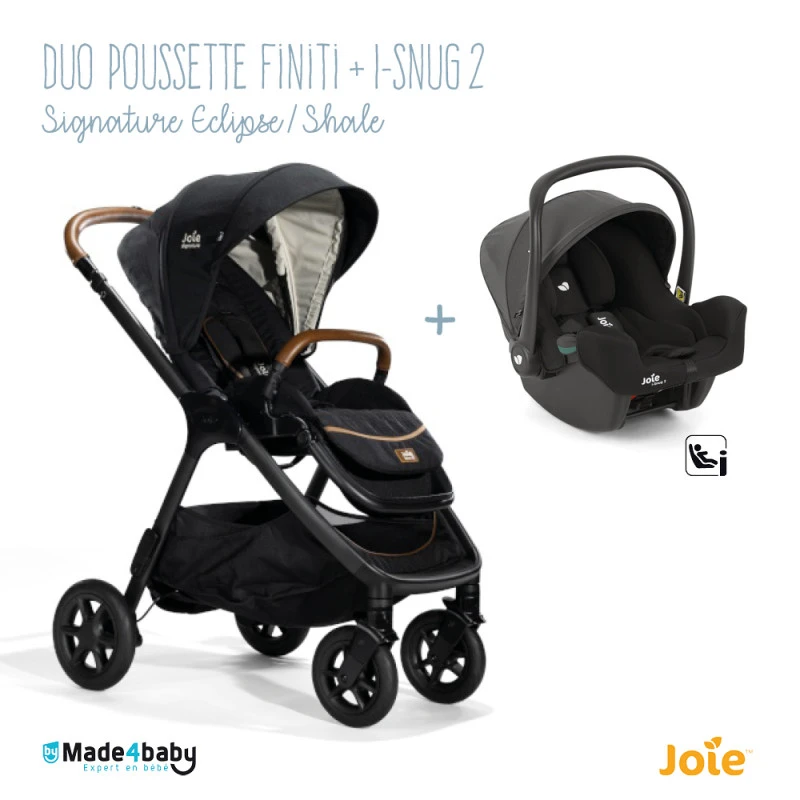 Pour ce Duo composé par Joie, la poussette est accompagnée du siège auto i-Snug 2 qui répond aux exigences de sécurité les plus élevées imposées par la norme R129/03. Il appartient à la gamme modulaire Encore Spinning System, homologuée i-Size : une seule et même base pivotante, la i-Base Encore qui accueille successivement la « coque » i-Snug 2 jusqu’à 12 mois environ, puis le siège-auto i-Harbour jusqu’à 4 ans environ. (Base et sièges vendus séparément)