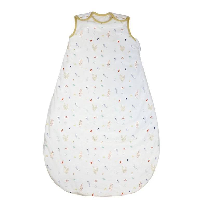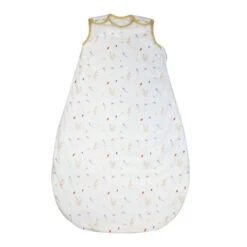 La gigoteuse 2ème âge Cache-cache en forêt de Trois kilos sept a de multiples atouts pour vous faire craquer ! Elle est réalisée en velours imprimé de motifs végétaux multicolores, mis en valeur par un biais moutarde sur l’encolure et les emmanchures… Un coordonné harmonieux qui fait souffler un vent boisé dans la chambre de bébé.