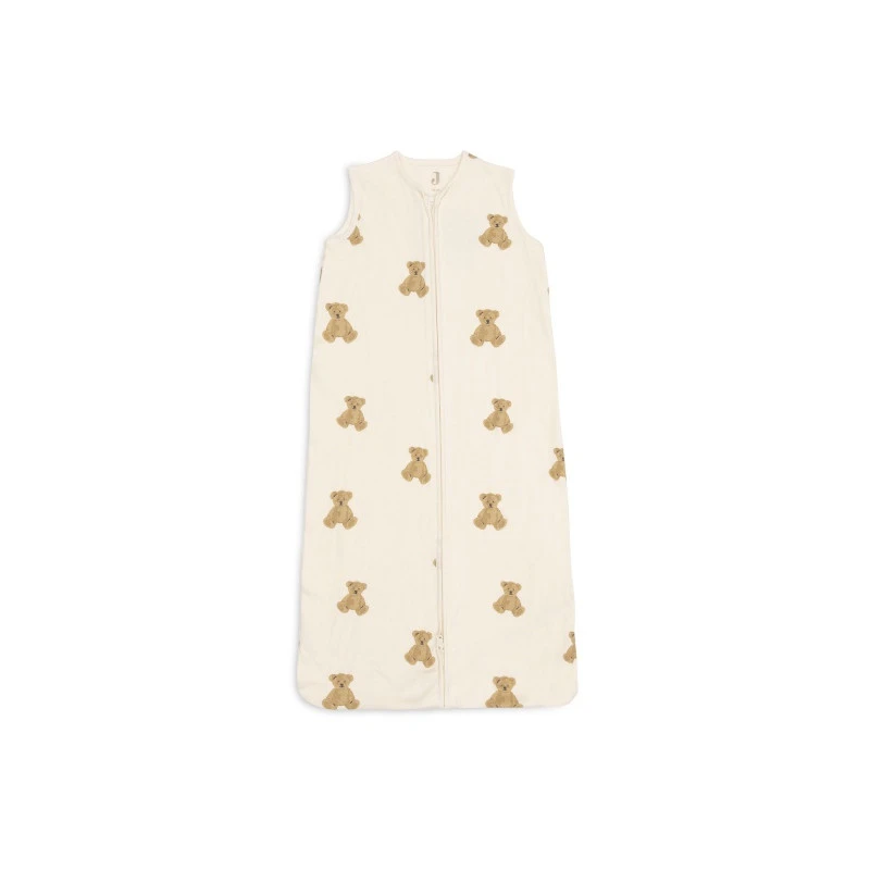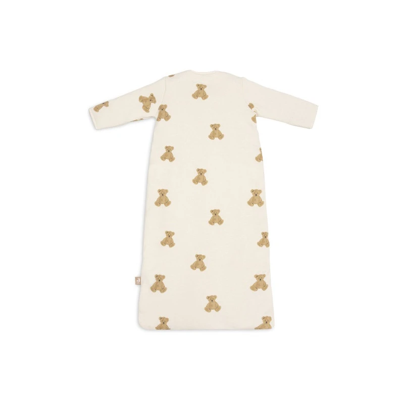 La gigoteuse 4 saisons de Jollein garde votre enfant au chaud toute la nuit et lui assure une totale sécurité, sans qu’il puisse se découvrir ou glisser dans son vêtement. Elle appartient à la collection Teddy Bear, réalisée avec un coton imprimé de multiples oursons, dans les tons biscuit, châtaigne et caramel sur un fond ivoire.
