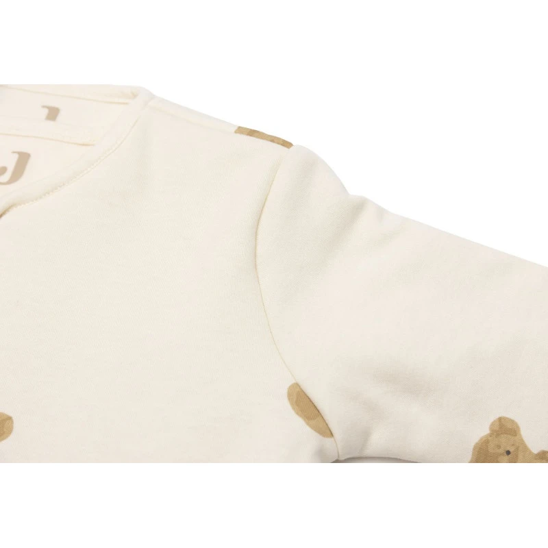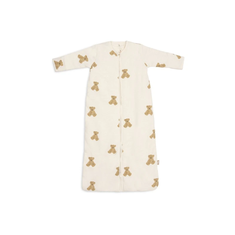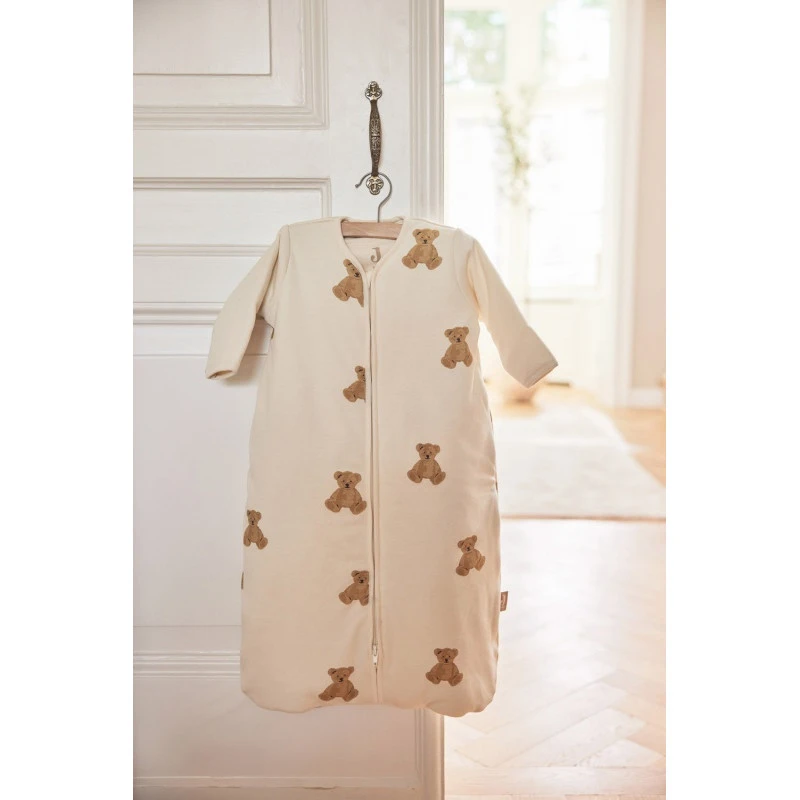 La gigoteuse 4 saisons de Jollein garde votre enfant au chaud toute la nuit et lui assure une totale sécurité, sans qu’il puisse se découvrir ou glisser dans son vêtement. Elle appartient à la collection Teddy Bear, réalisée avec un coton imprimé de multiples oursons, dans les tons biscuit, châtaigne et caramel sur un fond ivoire.