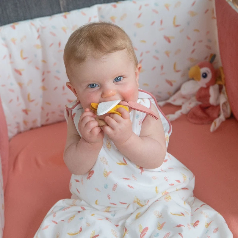 Cette ravissante gigoteuse naissance Happy de Domiva garantit que votre bout de chou reste couvert toute la nuit, sans risque de glisser à l’intérieur. Avec son imprimé de plumes colorées all over, elle est parfaitement coordonnée au tour de lit et à tous les autres objets de la collection, pour offrir à votre jeune enfant un univers de sommeil aussi apaisant et confortable qu’harmonieux.