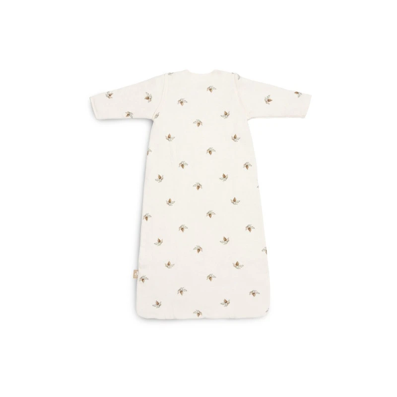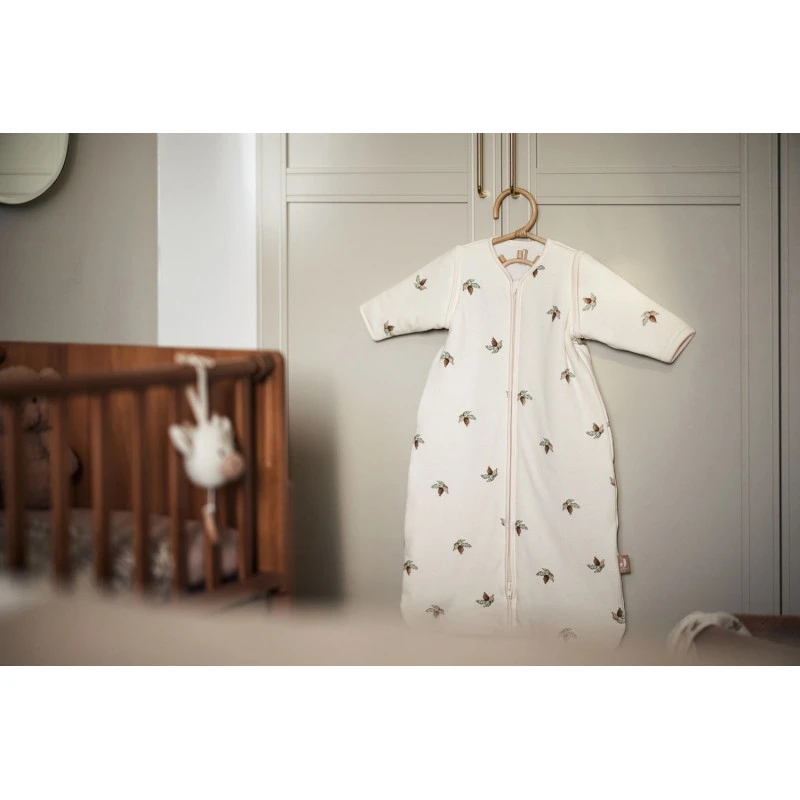 Cette ravissante gigoteuse 1er âge avec manches de Jollein appartient à la superbe collection Rosehip, réalisée avec un beau coton imprimé de motifs végétaux dans les tons caramel, vert et biscuit sur un fond beige.