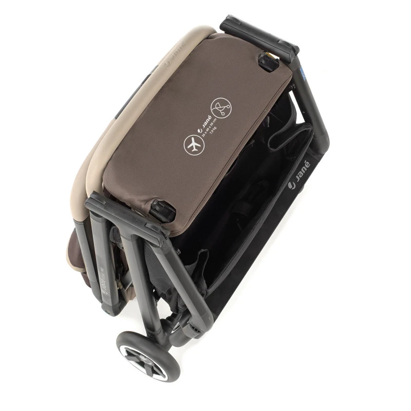 Pour finir, la poussette de Jané se replie aisément ! Elle prend alors peu de place, et vous suit partout : en ville, dans le bus, le métro, le train ou même l’avion. En effet, son pliage compact vous permet de la ranger dans l’auto sans vous encombrer, et même de l’emporter avec vous en cabine, si votre compagnie aérienne le permet.
