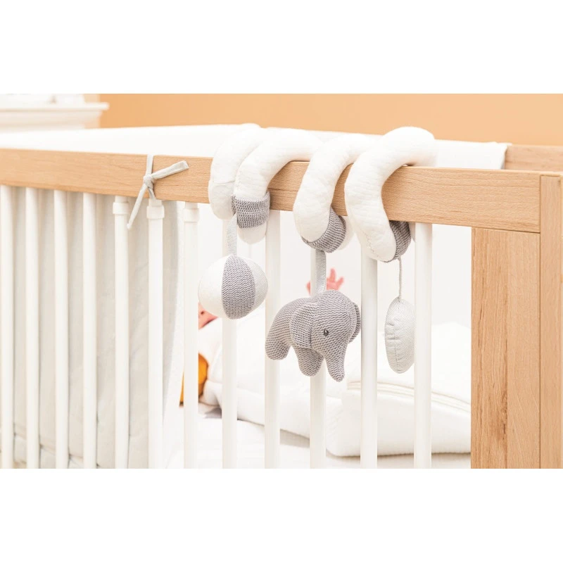 La spirale éléphant Nattou Tembo peut aussi s’installer autour de la poignée de la nacelle ou du siège auto 1er âge, pour accompagner bébé dans ses déplacements et l’amuser lors des promenades. En deux temps, trois mouvements, ce superbe jouet passe de la chambre de bébé à la voiture ou la poussette !