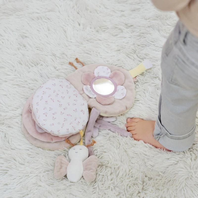 Le livre d’éveil en tissu Alice et Pomme de Nattou contient aussi de délicats détails, comme de petits rubans, qui exercent la précision des gestes de votre enfant… Sans oublier l’incontournable miroir pour qu’il fasse connaissance avec son propre reflet !