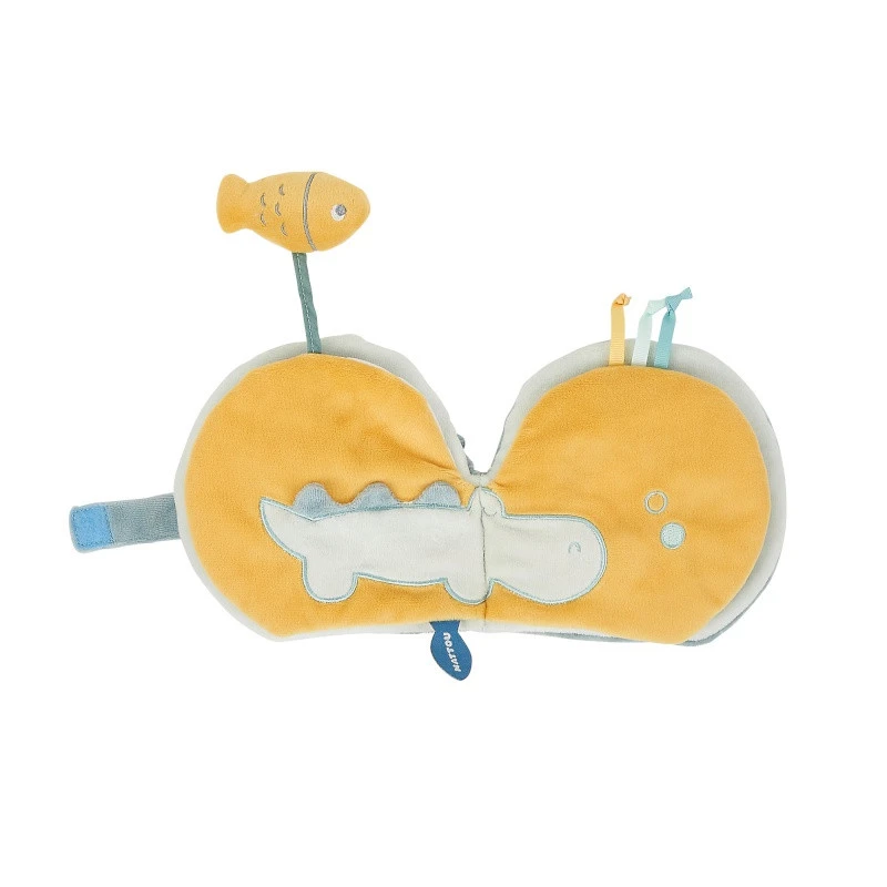 Le livre en tissu de Nattou est en outre équipé de liens pour l’accrocher où bon vous semble et éviter de l’égarer lors des balades.