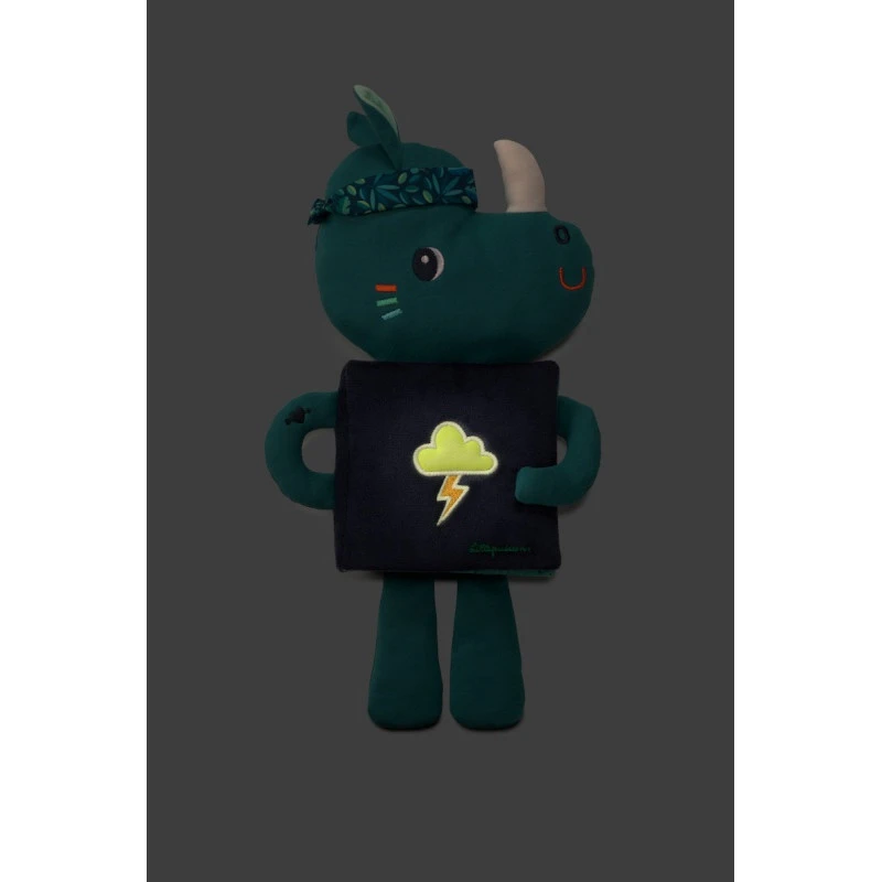 Les Lilliputiens vous présente cet adorable petit livre doudou assorti à la collection Marius, un adorable petit rhinocéros costaux au grand coeur !