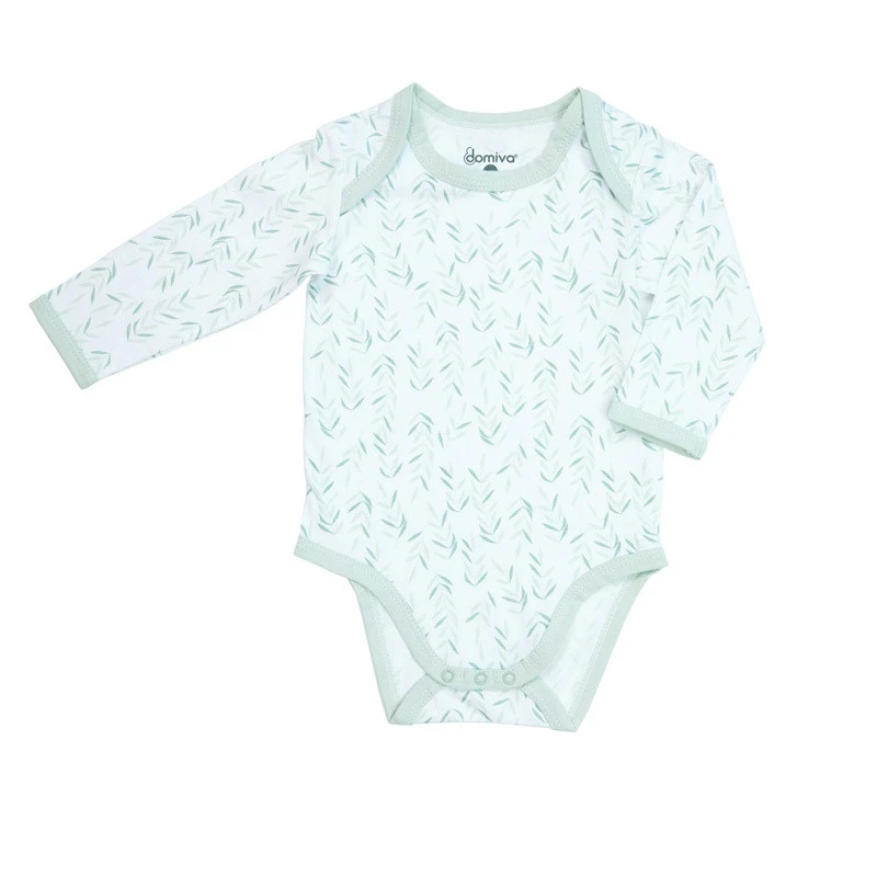 Domiva vous suggère donc ce lot de 2 bodies assortis, entièrement réalisés en coton : le premier est vert tendre, bordé d’un biais à motifs végétaux. Le second est inversé : un imprimé all-over et un liseré uni. Ils sont tellement mignons qu’ils ne se cachent plus : vous pourrez les utiliser en sous-vêtements bien sûr, mais aussi comme tee-shirts lors des demi-saisons ou même sous un gilet chaud en hiver !