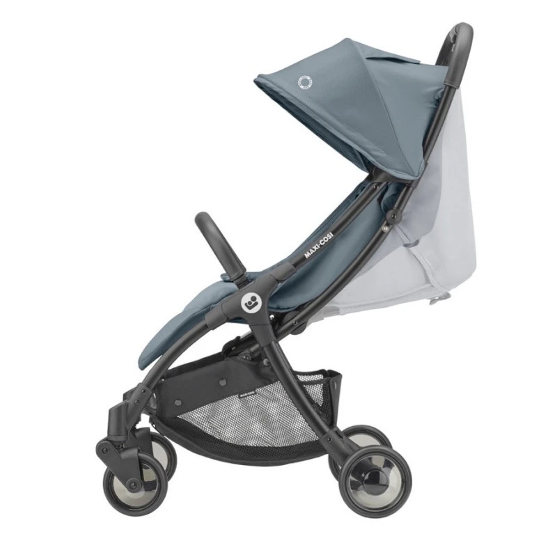 La poussette Jaya de Maxi Cosi est équipée d’un grand panier qui vous permet de ranger toutes vos affaires et celles de bébé pour garder les mains libres.
