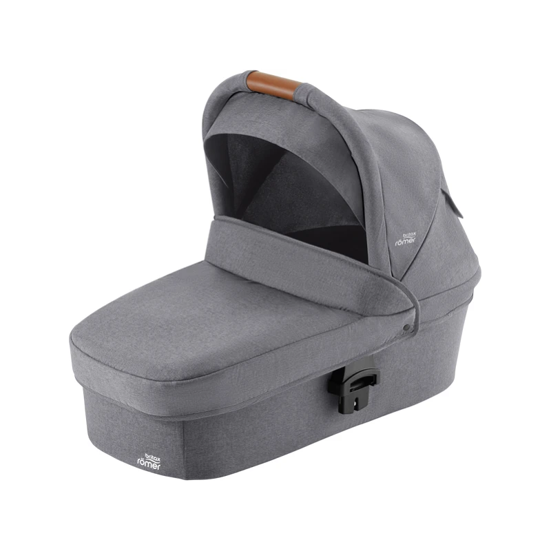 La nacelle Strider M de Britax-Römer se place en un rien de temps sur la poussette du même nom grâce à ses adaptateurs intégrés, et accueille votre bébé allongé, de sa naissance jusqu’à 9 kg, en maintenant son dos bien à plat.