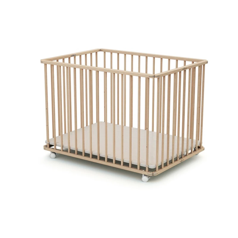 Pour que bébé s’éveille en douceur et joue en toute sécurité, équipez votre maison de ce joli parc en bois conçu par AT4.
