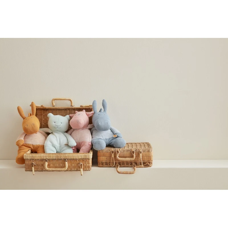 Vous connaissez l’âne Paco, la vache Lola et l’ours Nouky, trois inséparables copains qui accompagnent les plus petits depuis longtemps déjà ? Pour poursuivre cette aventure, ils ont été déclinés en coton bio, associant des jerseys unis et finement rayés, et garantissent ainsi à bébé, douceur, respect et sécurité. Dans cette joyeuse bande, voici la peluche 25 cm en coton bio Lola rose Noukie’s Les Iconiques !