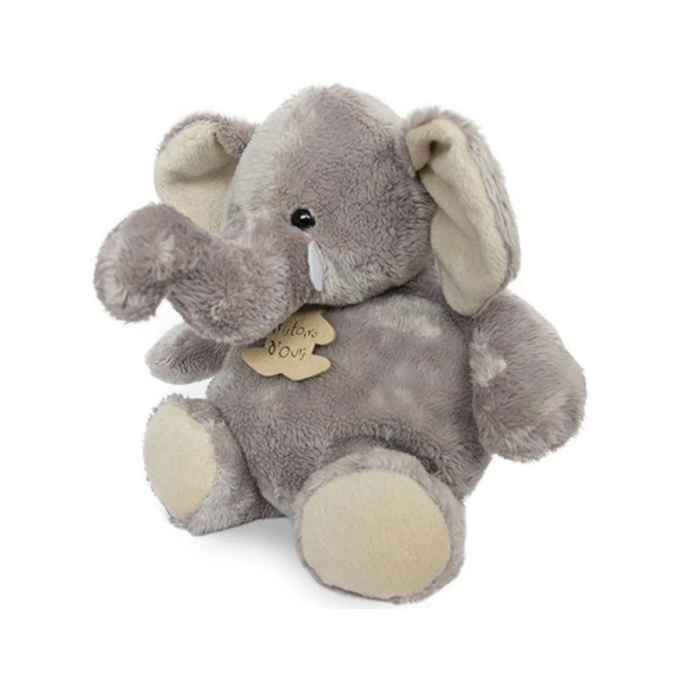 Pour cela, l’éléphant gris de Doudou et Compagnie possède bien des atouts qui séduiront les tout-petits comme les plus grands : de belles oreilles si tentantes à attraper, un ventre bien rond, une longue trompe intrigante et de délicates petites défenses. L’animal est aussi tout moelleux et très doux, si bien qu’on a n’a qu’une envie : le serrer fort contre son cœur.