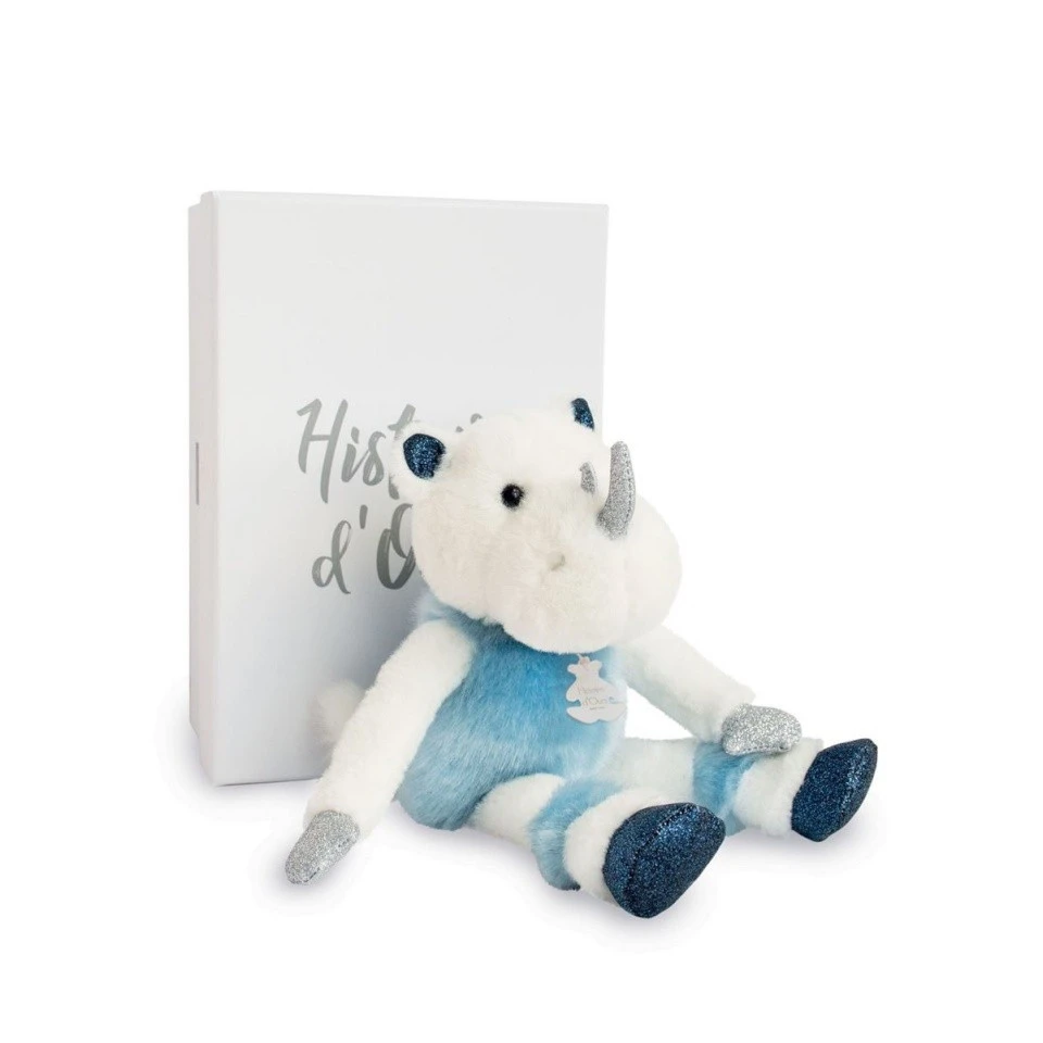 Magie et féérie s’invite dans la chambre de votre tout-petit, Rhinou le rhinocéros d’Histoire d’Ours, très fun avec sa fourrure toute douce et ses paillettes bleutées complètera à merveille la décoration de chambre de votre tout petit. Comment ne pas tomber sous le charme de ce beau rhinocéros Histoire d’Ours qui brille de mille feux ? Posé sur un meuble ou sur le lit, le rhinocéros Glitter Histoire d’Ours stimule l’imaginaire des plus petits pour offrir un moment de détente et de rêverie. Placée dans une belle boite cadeau, le rhinocéros Glitter bleu Histoire d’Ours est le cadeau idéal qui fera plaisir aux petits comme aux plus grands.