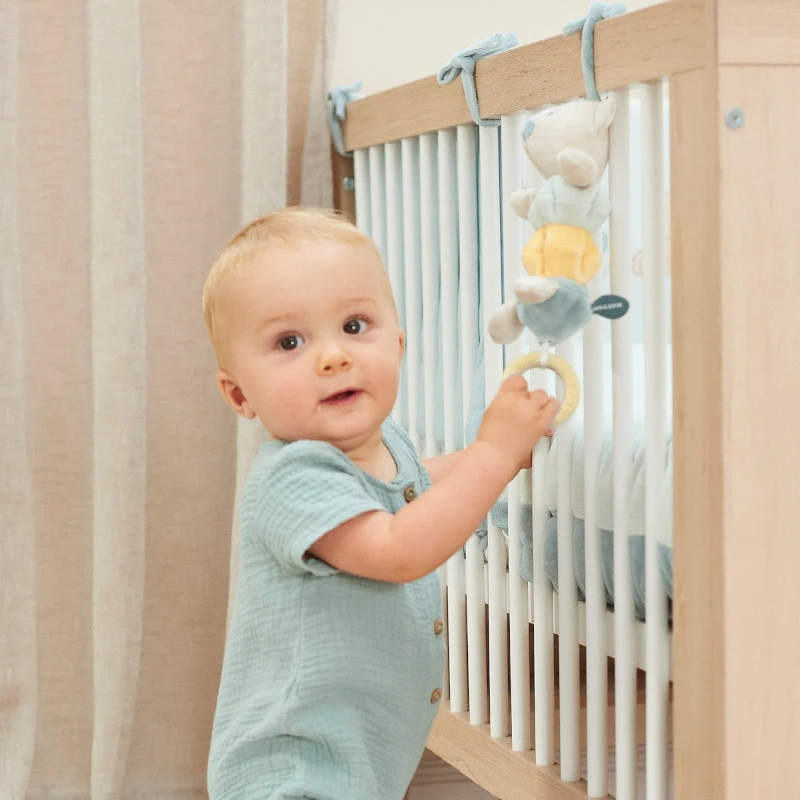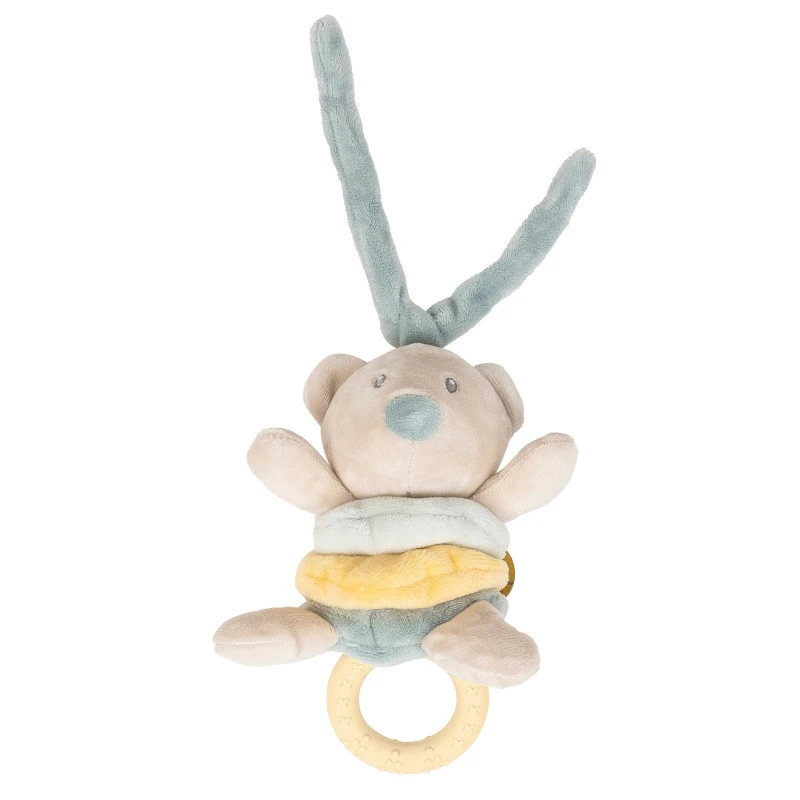Votre enfant sera sans nul doute attiré par ce nouveau compagnon tout mignon, l’ours Jules de Nattou, par son minois attendrissant, ses teintes douces et par l’anneau en silicone coloré entre ses pieds ! Que c’est tentant de tirer dessus, et de découvrir alors que l’animal se met à vibrer !