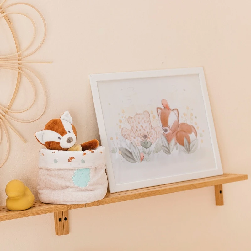 Boris est un panda roux trop craquant, avec ses oreilles pointues et sa longue queue rayée. Il est inséparable de son copain Jungo, le sympathique léopard des neiges au pelage joliment tacheté. Alors Nattou les a réunis sur la collection qui porte leur nom, composée de peluches, de jouets 1er âge, d’objets pour prendre soin de bébé, l’accompagner en balade ou décorer sa chambre, comme ce magnifique poster dans son cadre.