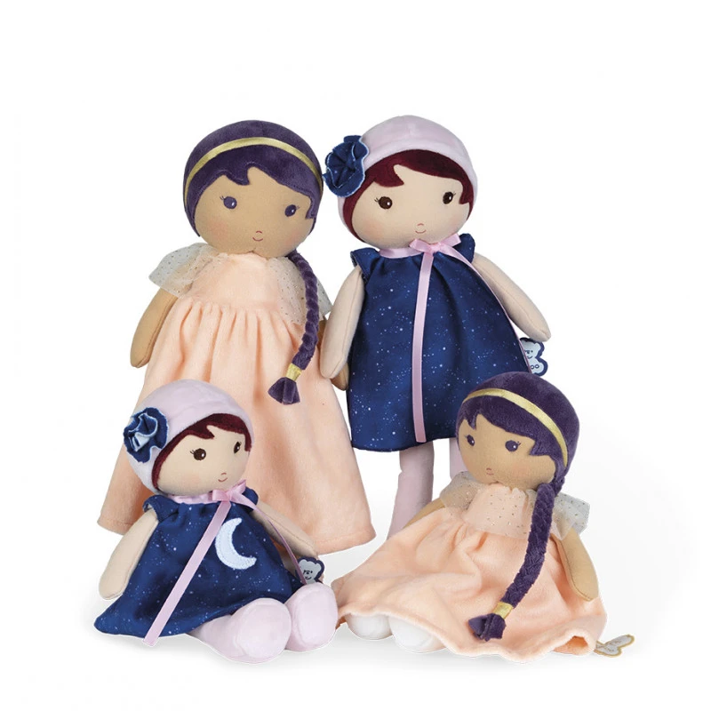 Découvrez la collection Tendresse de Kaloo et ses poupées toutes plus jolies les unes que les autres ! Elles vont vite devenir les meilleures copines de votre petite princesse et pourront partager avec elle mille et un jeux. Elles sauront aussi la réconforter et l’accompagner pour de longues nuits peuplées de contes de fées et de paillettes. Voici la poupée large Iris K Kaloo Tendresse, la belle princesse de cette tendre famille.
