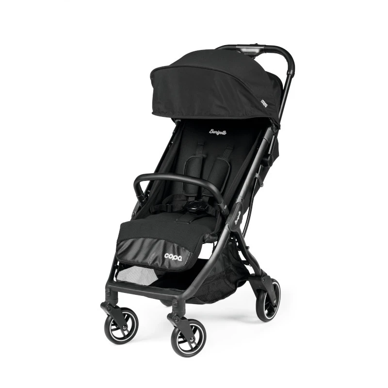 La poussette compacte Copa Burigotto se caractérise par une très grande maniabilité. Avec son châssis en aluminium et son petit poids de 7.9 kg seulement, elle se faufile partout et se conduit d’une seule main par le guidon…Bien pratique si vous devez tenir la main d’un enfant plus âgé ou pour porter votre sac de courses. Toutes les roues sont équipées d’amortisseurs et de roulements à billes, celles à l’avant sont pivotantes ou fixes pour convenir aussi bien à la ville qu’aux terrains légèrement plus accidentés. De surcroît, elle dispose d’un panier facilement accessible pouvant porter jusqu’à 5 kg.