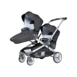 Pour celui de l’enfant, les dossiers des sièges sont inclinables en 3 positions, les repose-pieds sont réglables en hauteur et les capotes sont extensibles par zip pour une couvrance optimale. Chaque enfant est confortablement installé : l’installation du second ne nuit pas au confort du premier.