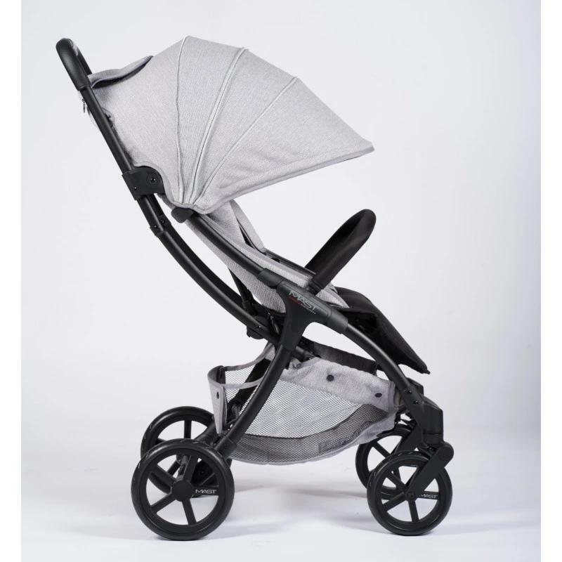 Pratique, la poussette M.2x Mast peut être plié facilement d’une seule main et reste debout une fois pliée ! Son large panier de rangement, facilement accessible, vous permettra de ranger les affaires de bébé, ou les votre !