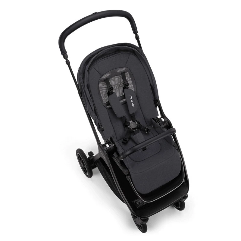 La poussette Triv next Nuna est particulièrement confortable et peut accueillir votre bébé dès sa naissance : vous installez l’assise face à vous, inclinez le dossier au maximum et réglez le repose-jambes pour obtenir une position couchée, adaptée au confort et au repos de votre tout-petit.