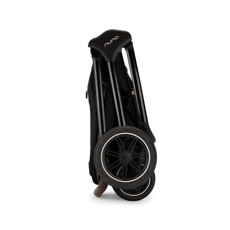 Dans sa poussette Triv next Nuna, bébé vous accompagne lors de vos escapades urbaines ! La poussette est équipée de 4 roues, dont 2 grandes à l’arrière dotés d’un frein « One touch » et 2 pivotantes à l’avant pour faciliter la circulation sur les trottoirs ou dans les magasins. Vous pouvez les bloquer quand le terrain devient plus accidenté, sur les cailloux ou les pavés par exemple. Et pour emprunter les transports en commun ou les escaliers, la poussette se plie facilement, bien à plat et compacte, d’une seule manipulation : vous pouvez ainsi porter ou tenir votre enfant d’une main, tandis que vous pliez la poussette avec l’autre.