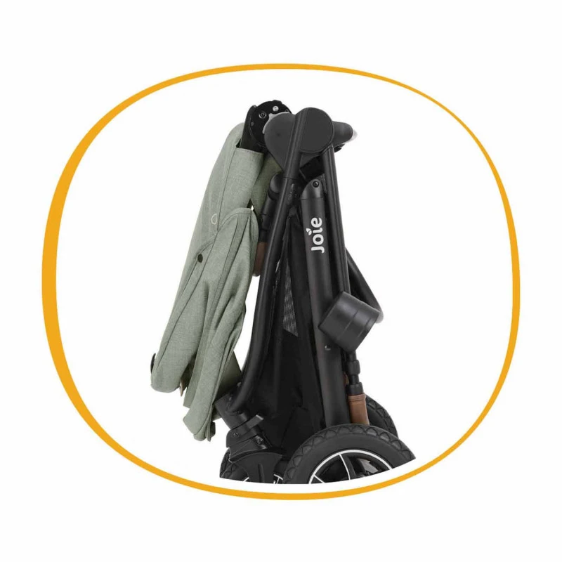 La poussette Versatrax de Joie se plie facilement en deux mouvements : basculez le dossier de l’assise vers l’avant et tirez sur la poignée ! Bien compacte même avec son hamac installé, elle tient debout et verrouillée, pour prendre le moins de place possible dans le coffre de votre véhicule.