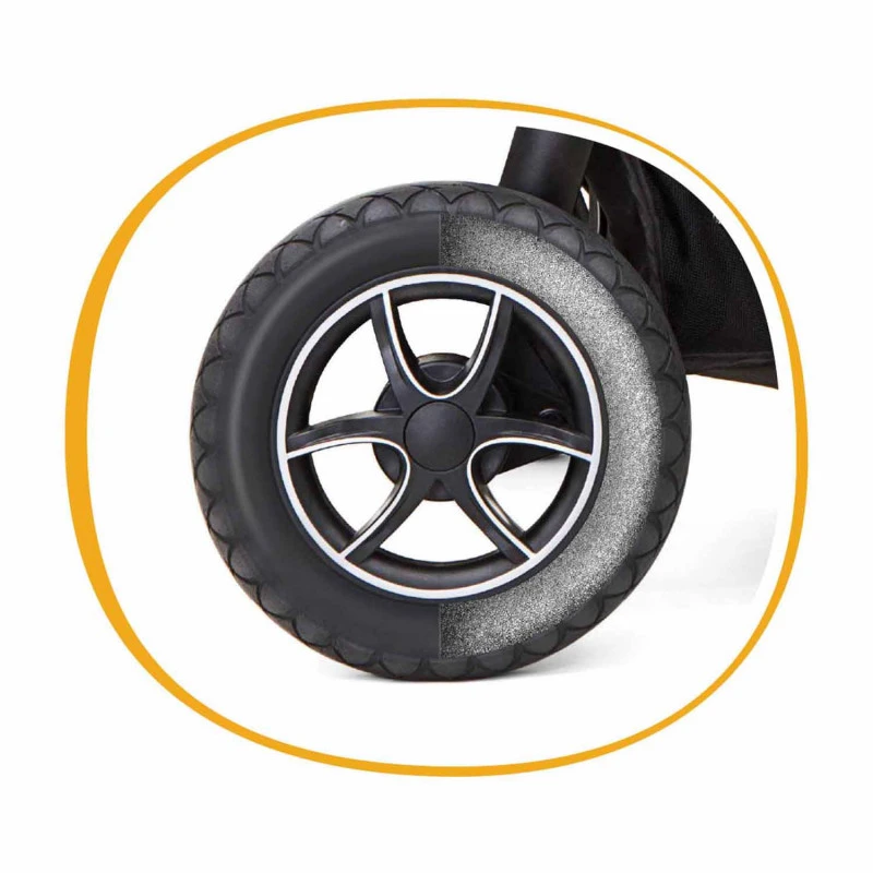 Avec ses 4 roues suspendues en gomme, la poussette Versatrax de Joie s’adapte à tous les styles de promenade. Les roues avant pivotent pour faciliter la circulation en ville ou dans les endroits exigus et vous pouvez les bloquer lorsque vous êtes sur des terrains plus accidentés. Pour le shopping, la poussette vous propose un grand panier de rangement facilement accessible. Et elle convient par tous les temps : sa grande capote extensible abrite bébé du soleil, avec son excellent indice anti-UV UPF50+ ainsi que de la pluie et du vent, grâce à l’habillage fourni.