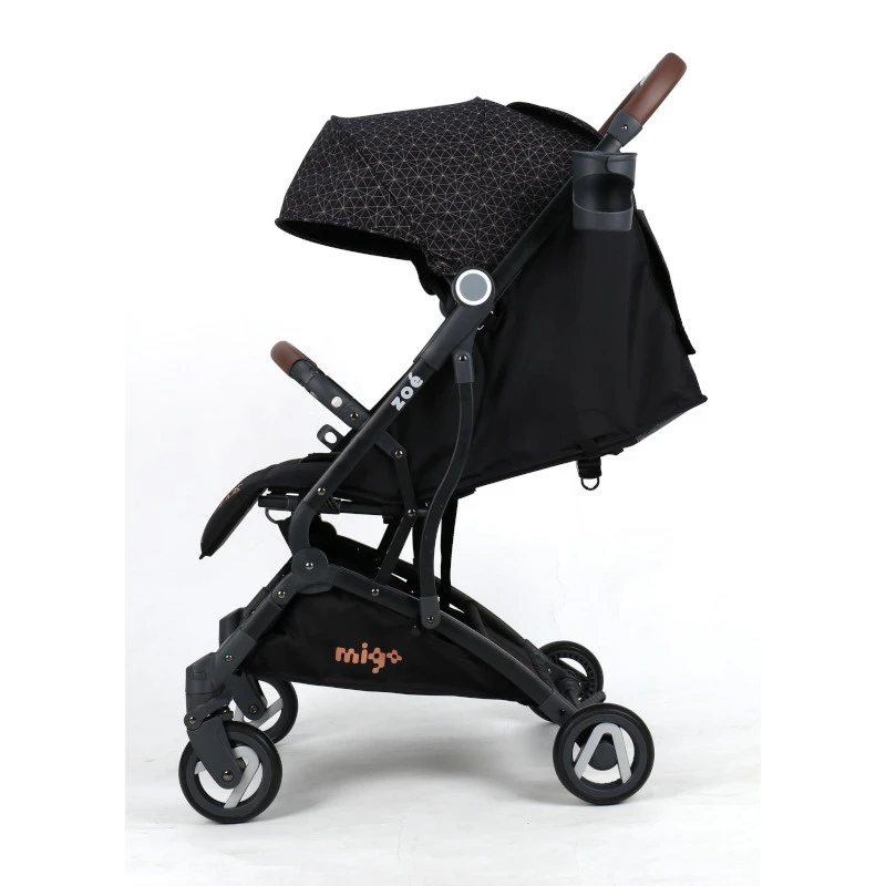 Et pour finir, la poussette Zoé de Migo a fait le choix de l’élégance ! Elle dispose de finitions soignées comme son guidon ou son arceau de maintien en simili cuir, ses tissus de belle qualité, sa capote imprimée… Irrésistible et moderne !