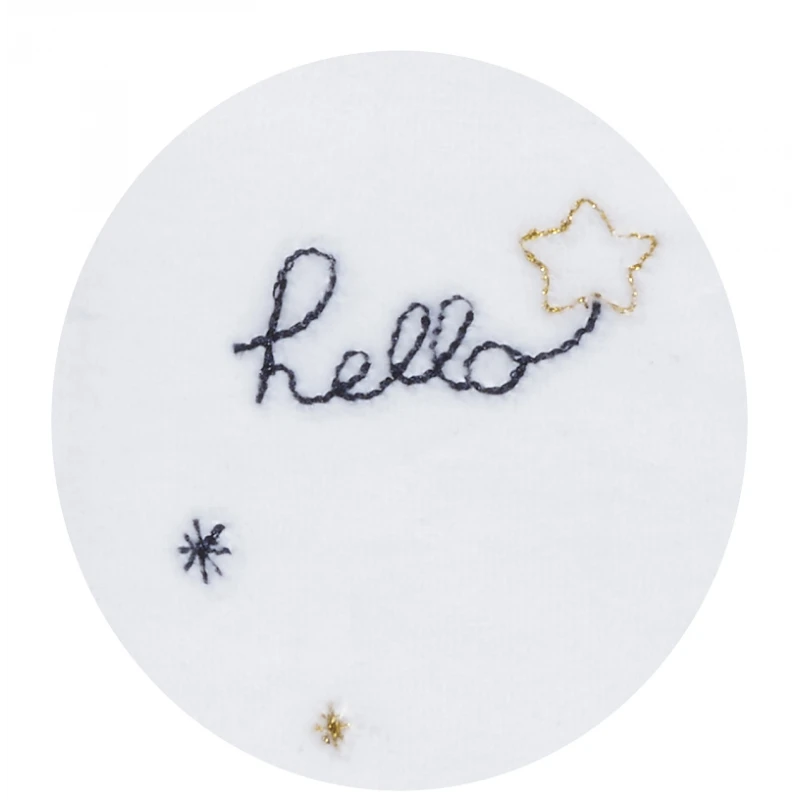 Découvrez la superbe collection Hello par Sauthon. Dans les tons de bleu marine, jaune et blanc, son adorable petite souris accompagnera bébé dans toutes ses aventures et ses plus jolis rêves. Avec un pied dans la lune et l’autre dans les étoiles, la collection Hello a tout pour plaire et plonge la chambre de votre tout petit dans son univers plein de rêves étoilés. Vous y retrouverez tous les objets nécessaires pour créer un univers cosy et confortable : Tour de lit, édredons, housse de couette, gigoteuses, pyjamas, matelas à langer, mobile, tapis d’éveil, sortie de bain, doudous et peluches… et plein d’autres articles !