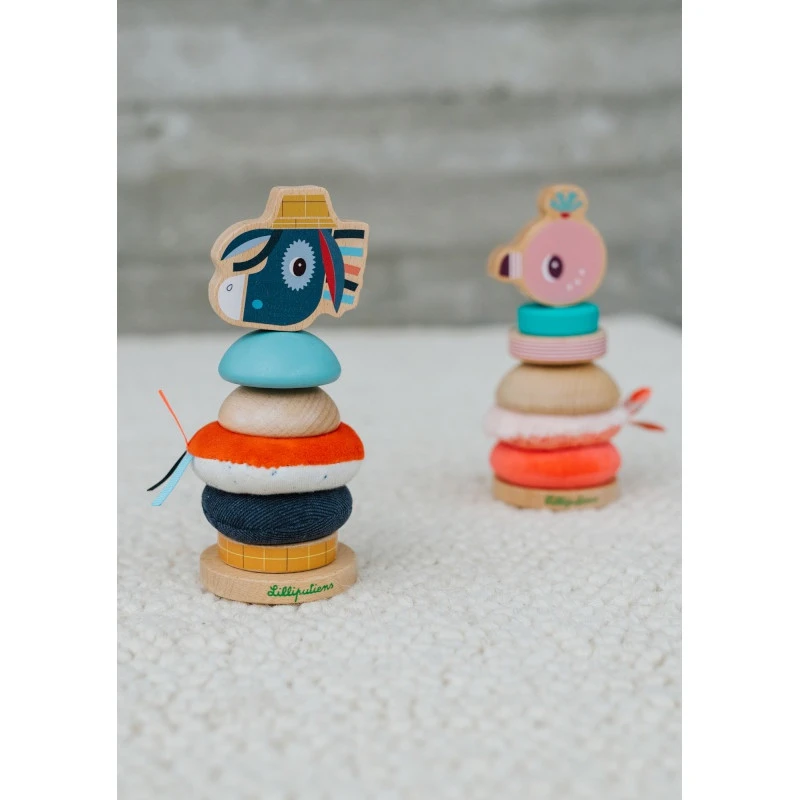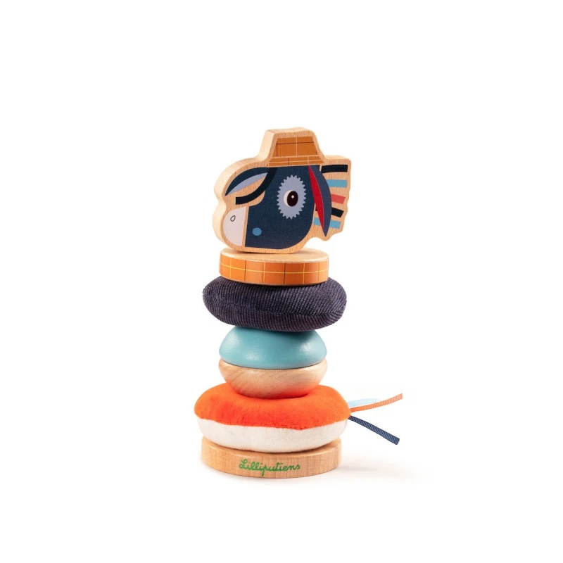 Et pour finir, tout au sommet de cette pyramide Ignace des Lilliputiens, votre enfant aura la joie de placer la tête de l’ânon rigolo avec ses mèches rebelles et ses grands yeux curieux.