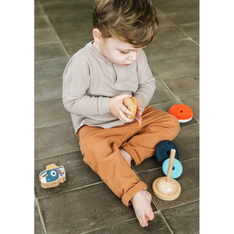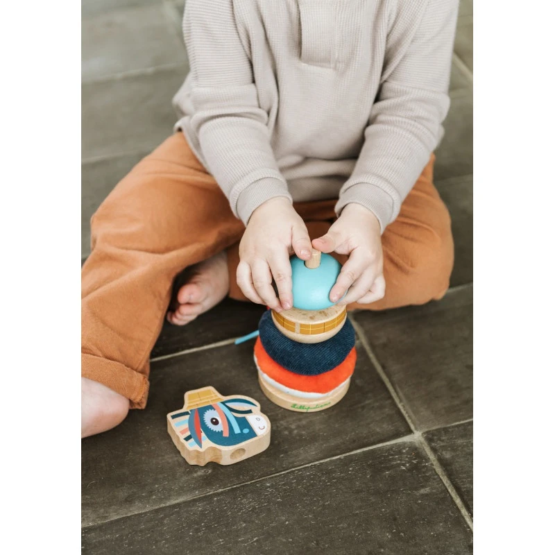 Les anneaux de cette pyramide Ignace des Lilliputiens sont réalisés avec des textures et des couleurs différentes, qui participent au développement de la vue et du toucher de votre petit. Ils stimulent aussi son imagination, et sa capacité à réfléchir s’il veut les ranger du plus grand au plus petit, dans le sens opposé ou selon tout autre ordre, au gré de ses envies.