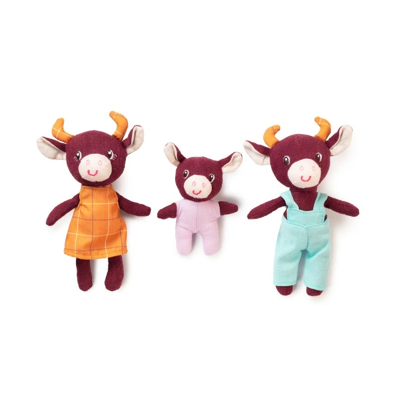 - De 3 mini-personnages Vache : maman, papa et bébé Rosalie.