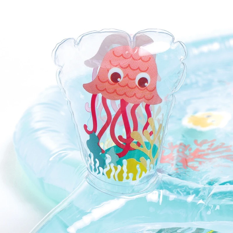 En premier lieu, gonflez ce charmant tapis proposé par LUDI, puis remplissez-le d’eau du robinet et offrez à votre jeune enfant dès 10 mois des sensations qu’aucun autre jouet ne procure : celles liées aux mouvements du liquide !