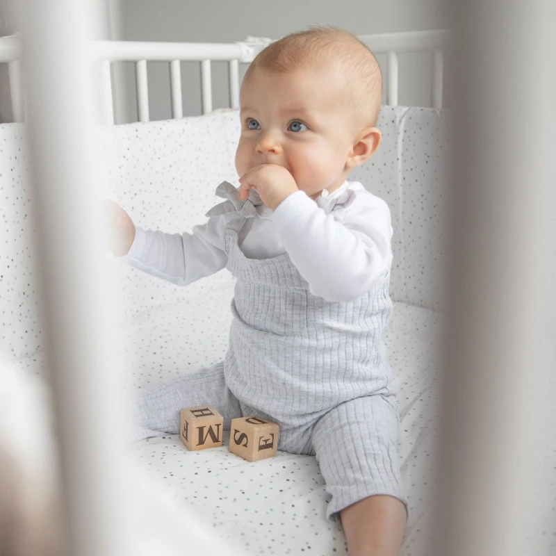 Domiva vous propose un astucieux tapis avec bords, qui peut s’adapter aussi bien aux parcs de 75 x 95 cm qu’à ceux mesurant 100 x 100 cm grâce à un double piquage. Il s’accroche facilement aux barreaux à l’aide de nouettes tout autour, et offre alors à votre enfant un espace de jeu douillet, protecteur, qui limite le risque de se faire mal contre le fond du parc ou contre les côtés s’il roule ou chute.