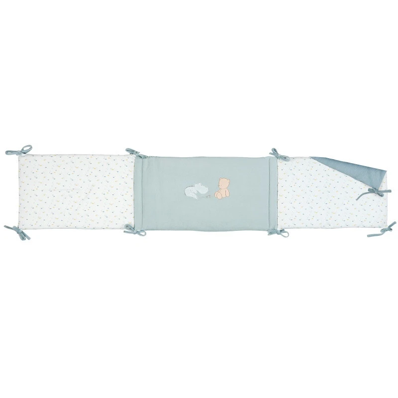 Le tour Roméo, Jules & Sally de Nattou s’accroche simplement à l’aide de nouettes sur votre lit de dimensions 60 x 120 cm ou 70 x 140 cm. Il crée alors autour de votre nourrisson un cocon chaleureux d’un volume plus adapté à sa petite taille, et il évite aussi que bébé se cogne contre le bois ou se coince un bras dans les barreaux.