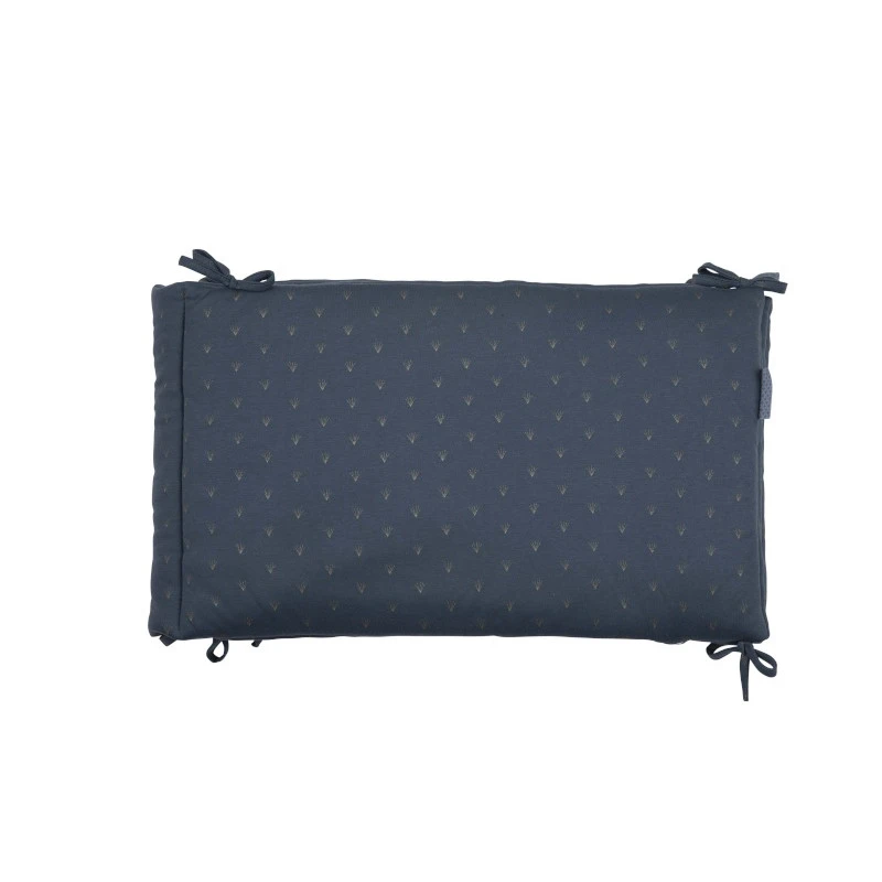 Le tour de lit Périclès Steel est réalisé dans un superbe tissu uni bleu-gris, décoré de fins motifs jaunes dorés, et peut être facilement lavé en machine à 30 °C. Comme le tissu utilisé est certifié Oeko-Tex®, vous avez la garantie qu’il respecte la peau délicate et la santé de votre enfant.