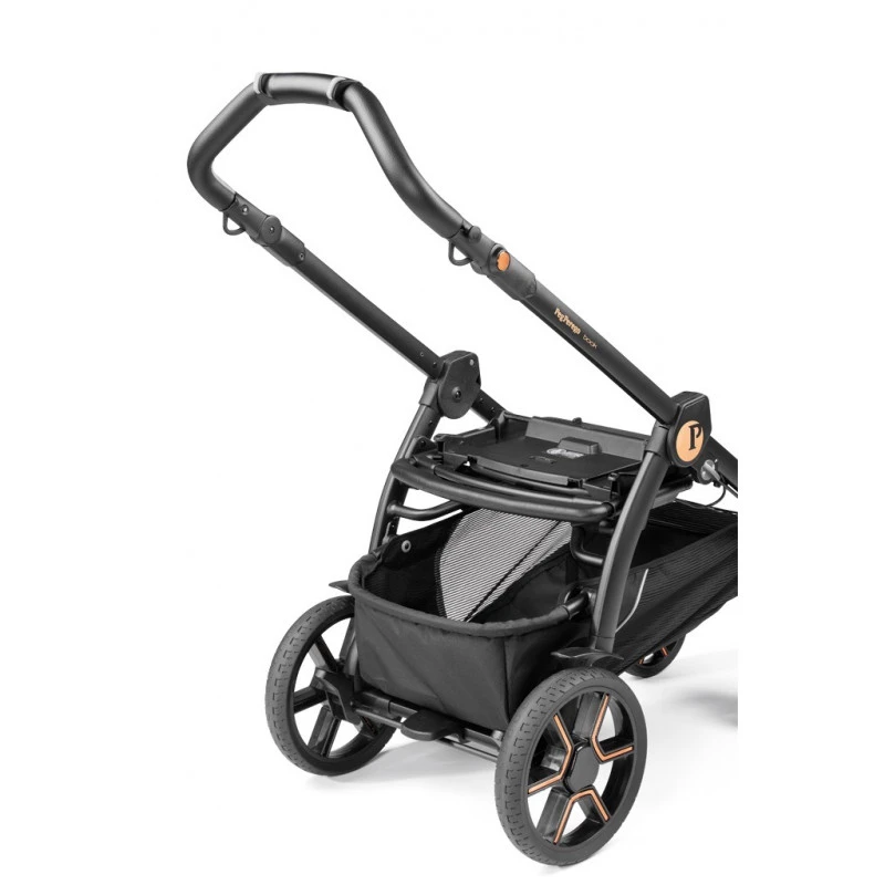 - S’accroche en un seul geste sur les poussettes Peg Perego et les poussettes d’autres marques avec des adaptateurs spéciaux (en option)